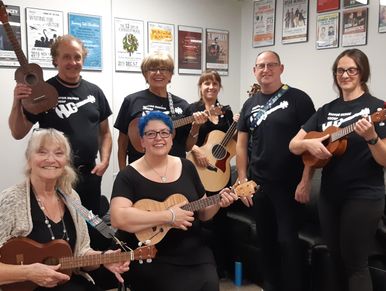 The Hinton Ukulele Group meets Wednesdays at 7:00 PM to learn to play new songs for fun and fellowship! There are ukuleles available for loan, to those without. All skill levels are welcome! Performing is not required.