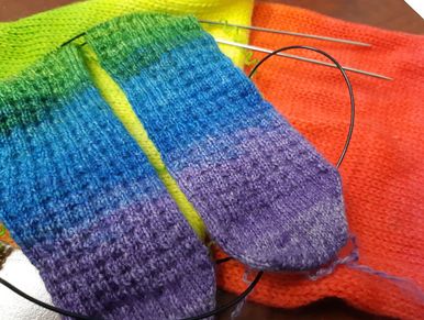 Knit Night with The Hinton Yarnbags takes place Alternate Tuesdays (opposite Peer Support Group Nights) at 7:00 PM for yarn crafting and peer support. Learn to knit or crochet, get help with a project, or help others.